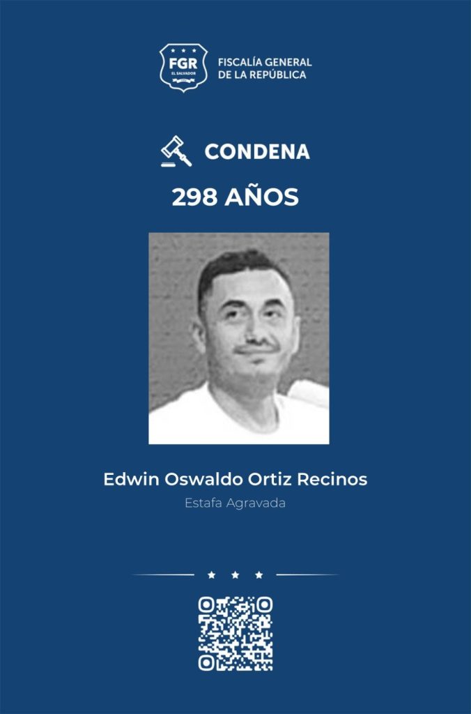Edwin Oswaldo Ortiz fue condenado a un total de 298 años de prisión, luego de que la Fiscalía General de la República (FGR) lograra un incremento sustancial de la pena tras presentar un recurso de apelación ante la Cámara Primera de lo Penal, informaron fuentes judiciales.