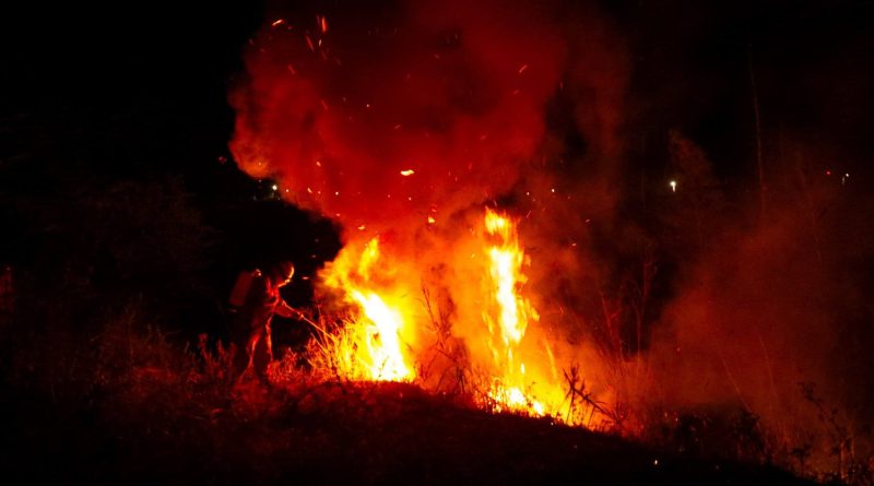 INCENDIO EN TERRENO CON VEGETACIÓN SECA GENERA ALERTA EN CARRETERA AL PUERTO DE LA LIBERTAD