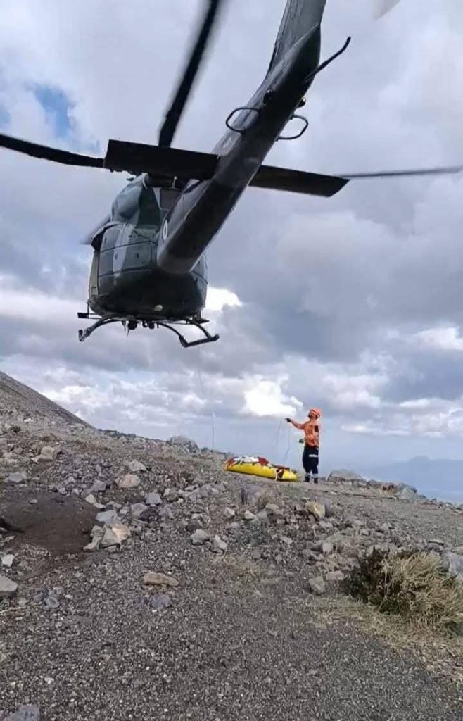 El operativo permitió trasladar el cuerpo desde la cima del volcán hacia un área segura para continuar con los procedimientos correspondientes.