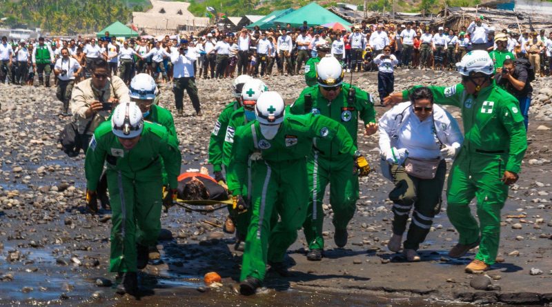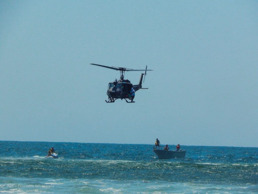 Elementos de la Cruz Verde Salvadoreña desarrollaron un simulacro de rescate en la playa El Majahual, ubicada en La Libertad Costa, como parte de las acciones preventivas del Plan Verano 2026.