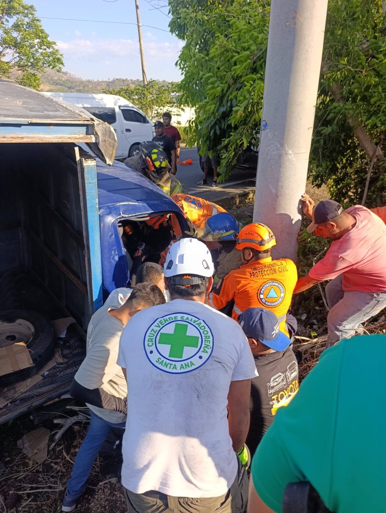 De acuerdo con el reporte de la Cruz Verde Salvadoreña seccional Santa Ana, el percance ocurrió alrededor de las 3:59 p.m., cuando un camión impactó a un costado de la vía.