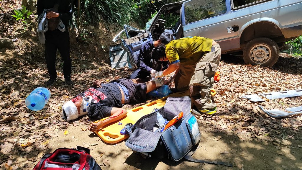 Socorristas acudieron al lugar para brindar atención prehospitalaria al conductor, quien resultó con diversas lesiones producto del percance.