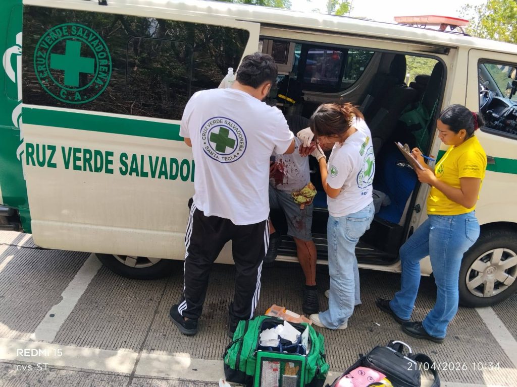 Socorristas de Cruz Verde Salvadoreña, seccionales Santa Tecla y Antiguo Cuscatlán, acudieron al lugar para brindar asistencia prehospitalaria a la víctima, quien presentaba trauma en la cabeza.