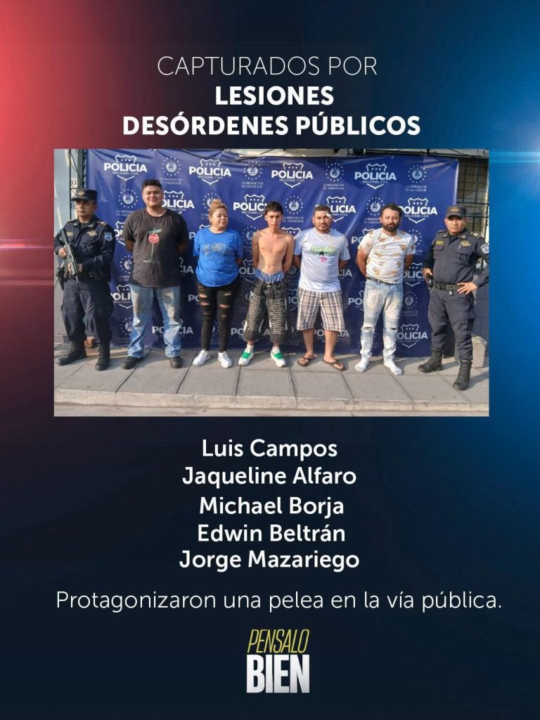 Los detenidos fueron identificados como Luis Alexander Campos Rauda, Jaqueline Lisbeth Alfaro Marroquín, Michael Jeremías Borja Efigenio y Jorge Amílcar Mazariego Marroquín, quienes serán remitidos por el delito de lesiones.