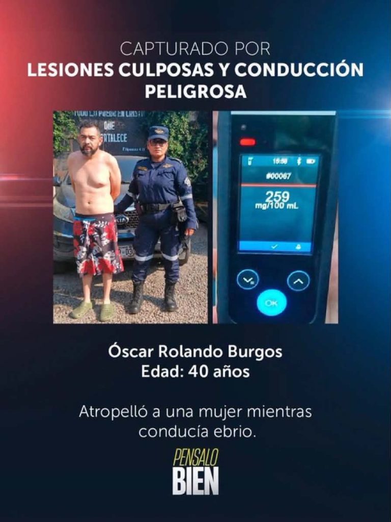 Un hombre identificado como Óscar Rolando Burgos, de 40 años, fue capturado tras atropellar a una mujer en la 25 Calle Poniente y 10ª Avenida Sur, en Santa Ana.