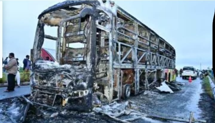 Al menos 25 personas perdieron la vida y varias más resultaron heridas luego de que un autobús se incendiara tras ser embestido por una motocicleta en el distrito de Kurnool, en el estado de Andhra Pradesh, India.