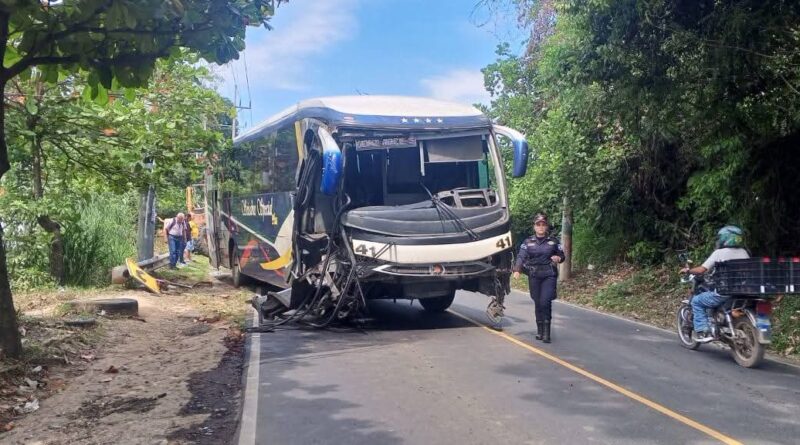 CIUDAD ARCE, LA LIBERTAD. — Equipos de Comandos de Salvamento de Ciudad Arce atendieron una emergencia vial registrada este jueves en la calle antigua a San Salvador, luego de que una unidad del transporte colectivo de la empresa SEISABUS se viera involucrada en un accidente de tránsito que dejó personas lesionadas.