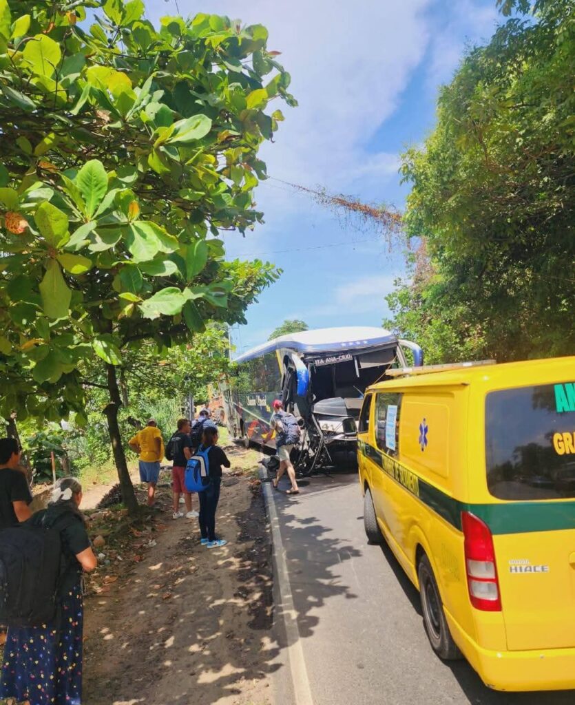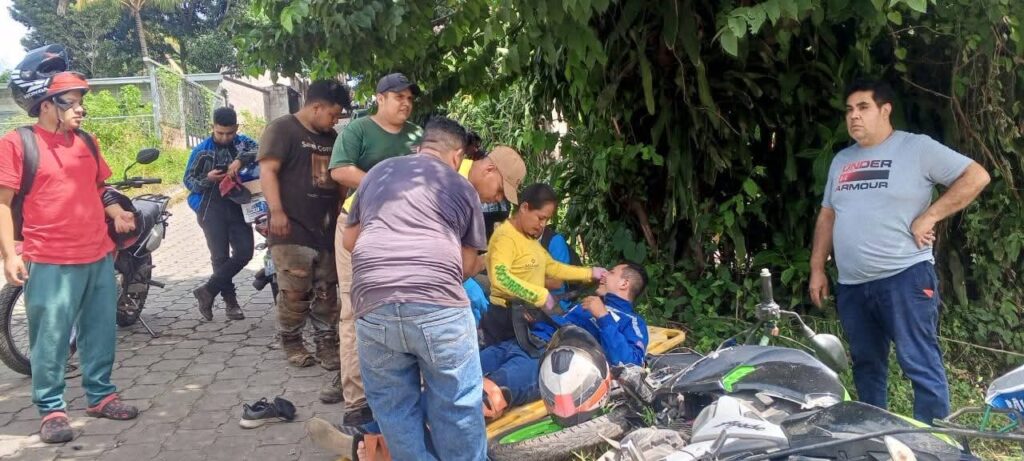 “Nuestro personal de Atención Prehospitalaria continúa atendiendo personas lesionadas en el lugar del accidente de una SEISA BUS, la cual invadió carril colisionando con un motociclista e impactando contra una maquinaria”, informó Comandos de Salvamento en sus redes sociales bajo el mensaje #YoRespondo.