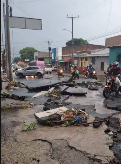Santa Ana, El Salvador. — Las fuertes lluvias registradas en las últimas horas provocaron daños considerables en la infraestructura vial de la Aldea San Antonio, en Santa Ana Centro, donde una calle quedó severamente afectada tras el colapso de tragantes y el desbordamiento de agua pluvial.