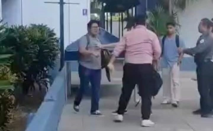 En las imágenes se observa a un grupo de estudiantes involucrados en un altercado físico, donde se registran empujones, golpes y patadas. En medio del incidente, personal de vigilancia del centro de estudios intervino para intentar separar a los jóvenes y restaurar el orden.