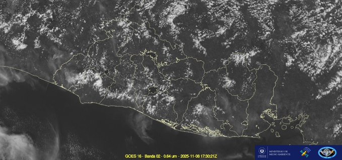 San Salvador. — El Ministerio de Medio Ambiente y Recursos Naturales (MARN) informó que para esta tarde de sábado 8 de noviembre de 2025, se prevé formación de nubosidad y lluvias aisladas en diferentes sectores del país, principalmente en la cadena montañosa norte y en la franja volcánica occidental y central.