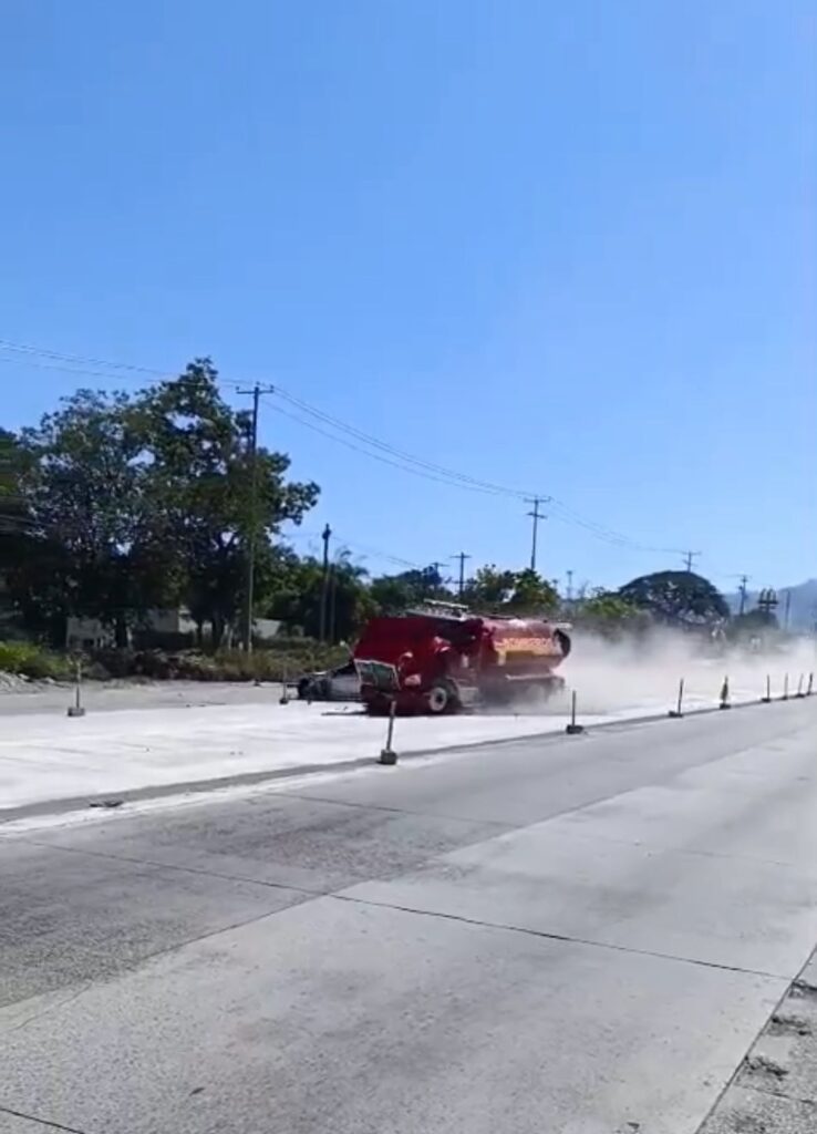 Un vehículo particular colisionó contra un camión cisterna del Cuerpo de Bomberos en las cercanías del encuentro de Lourdes Colón, frente a Holcim. El camión se dirigía a atender una emergencia de rescate cuando ocurrió el percance, según el reporte preliminar.