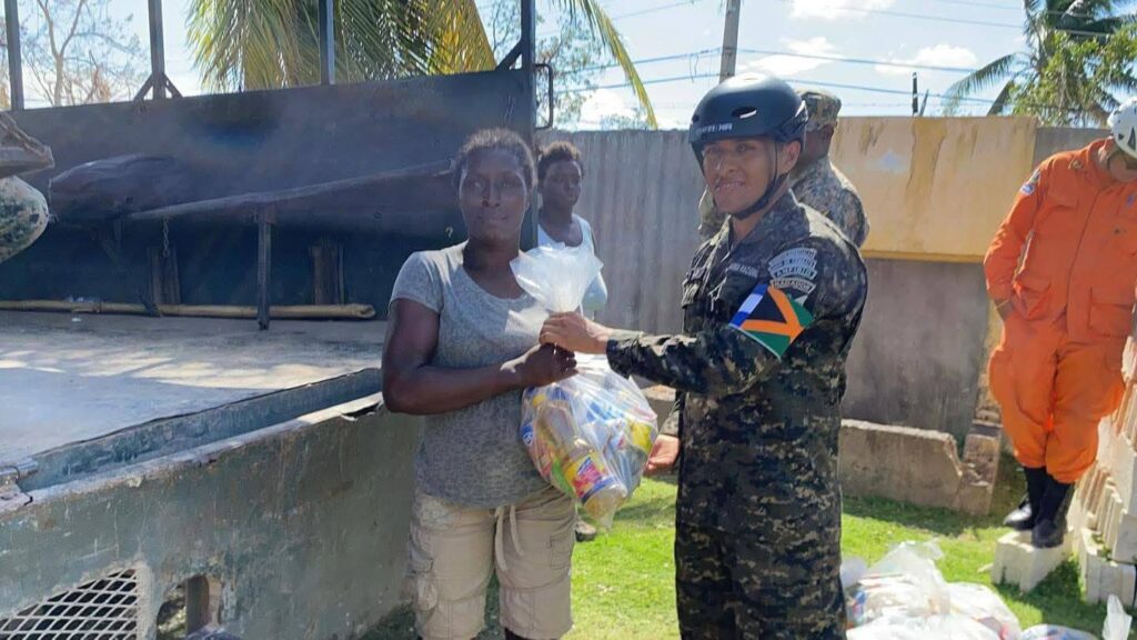 Este martes, los equipos de rescate y apoyo humanitario realizaron la entrega de paquetes alimentarios, productos de higiene y agua potable en la comunidad de Burnt Savannah, una de las zonas más golpeadas por el fenómeno natural. La ayuda busca garantizar el bienestar y la seguridad alimentaria de las familias damnificadas.