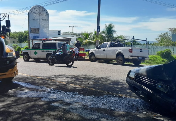 La Libertad.—Al menos cuatro personas resultaron lesionadas en un accidente de tránsito ocurrido sobre el kilómetro 38 y medio de la carretera Litoral, a la altura de la entrada a la playa San Blas, en el Puerto de La Libertad, informó Cruz Verde Salvadoreña.