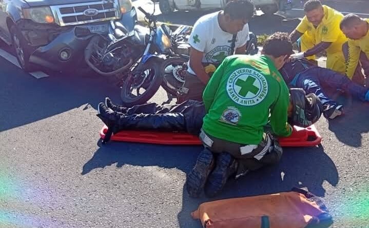 De acuerdo con el reporte de los socorristas de Cruz Verde Salvadoreña, seccional Santa Anita, los motociclistas fueron colisionados en la parte trasera por una camioneta, lo que provocó que ambos cayeran sobre la vía.