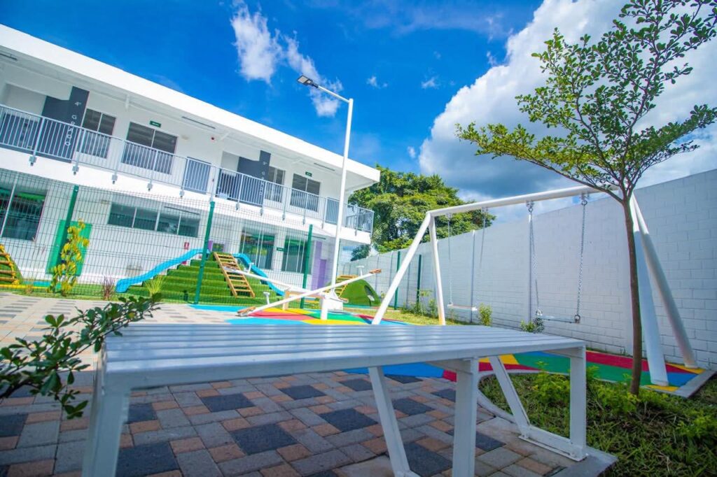 Además, el centro escolar cuenta con áreas recreativas seguras, pisos con protectores y juegos modernos que fomentan la convivencia y el desarrollo físico de los estudiantes. También incluye un salón de usos múltiples y una plaza de esparcimiento diseñada para impulsar el desarrollo cultural y social de la niñez.