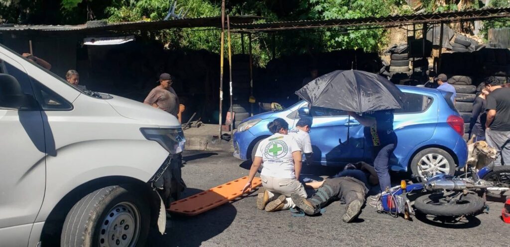 Equipos de Cruz Verde Mejicanos se desplazaron al lugar para brindar asistencia prehospitalaria y trasladaron a las dos víctimas hacia un centro asistencial, donde serán evaluadas por múltiples traumas.