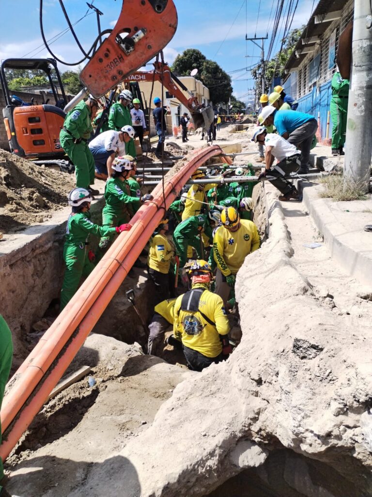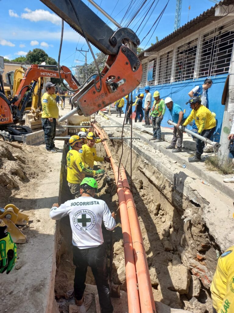 Dos trabajadores de la empresa DISA perdieron la vida este domingo tras quedar soterrados mientras realizaban labores de instalación de cableado subterráneo en la 6ª calle oriente y 8ª avenida sur, en pleno Centro Histórico de San Salvador.