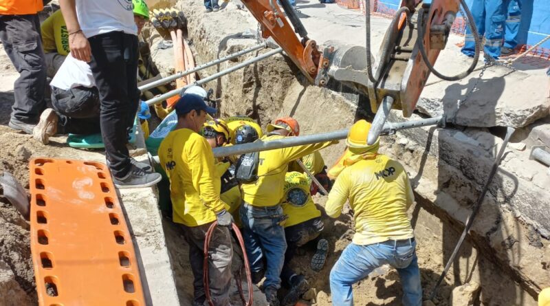 Dos trabajadores de la empresa DISA perdieron la vida este domingo tras quedar soterrados mientras realizaban labores de instalación de cableado subterráneo en la 6ª calle oriente y 8ª avenida sur, en pleno Centro Histórico de San Salvador.