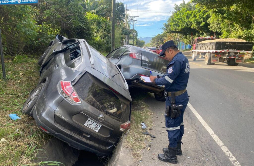 De acuerdo con el informe preliminar, dos vehículos colisionaron tras una invasión de carril, provocando que ambos automóviles se salieran de la vía. Afortunadamente, no se reportaron personas lesionadas, únicamente daños materiales.