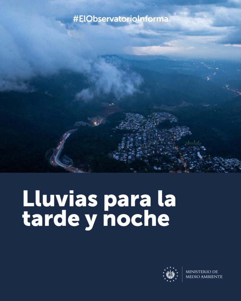 San Salvador. – El Observatorio de Amenazas del Ministerio de Medio Ambiente informó que para este jueves se prevén lluvias por la tarde y noche en diferentes puntos del país, mientras que durante la mañana el cielo permanecerá poco nublado.