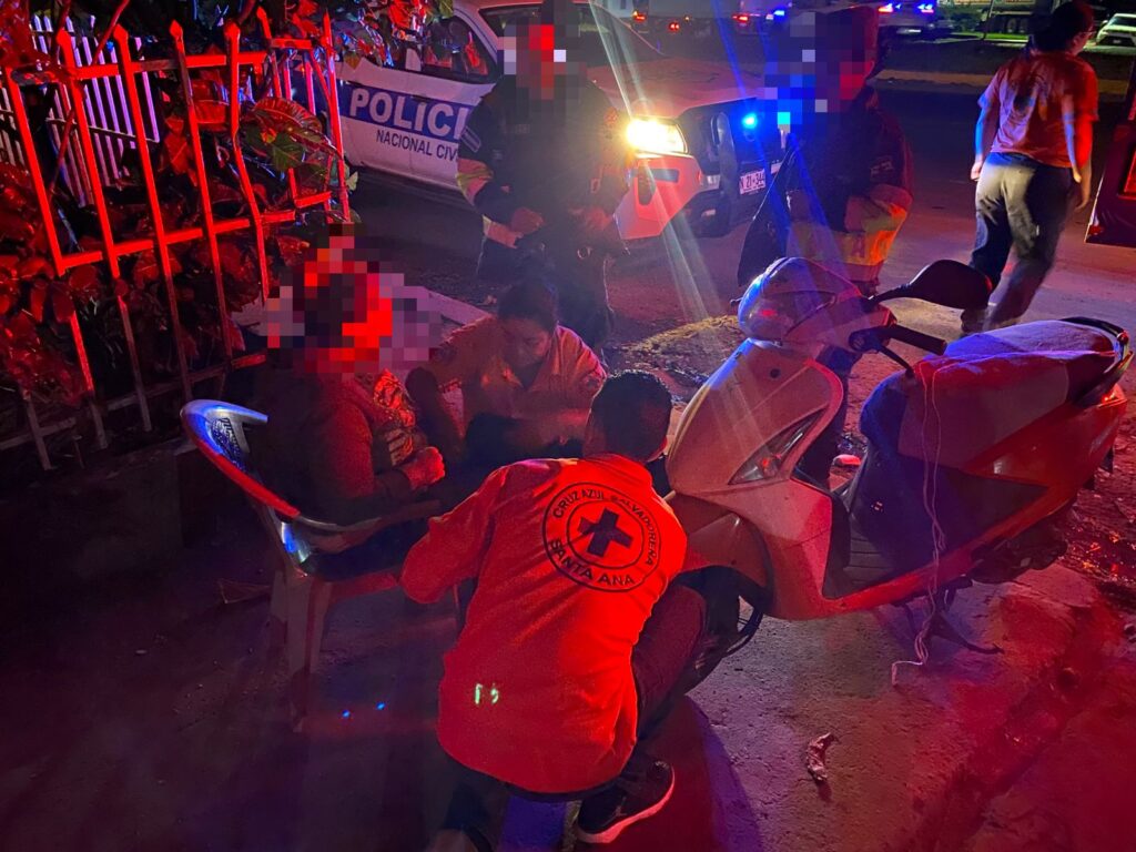 Socorristas de Cruz Azul, seccional Santa Ana Centro, atendieron este martes a una motociclista que resultó lesionada a la altura del redondel Cantarrana, en el sentido que conduce de Santa Ana hacia Sonsonate. La emergencia fue reportada por automovilistas que alertaron sobre una persona herida en la vía.