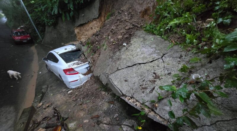 El incidente ocurrió sobre la calle al Guayabo, en la urbanización Bellos Horizontes, en Los Planes de Renderos. Afortunadamente, el percance solo dejó daños materiales, ya que no había personas dentro del automóvil al momento del colapso.