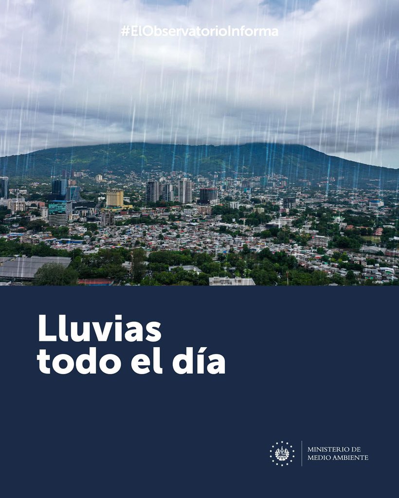 El Ministerio de Medio Ambiente y Recursos Naturales (MARN) informó que este lunes se esperan lluvias desde horas de la mañana y durante todo el día en diversos puntos del país, por lo que se recomienda a la población tomar precauciones ante posibles inundaciones y deslizamientos.