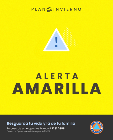 PROTECCIÓN CIVIL REITERA QUE SE MANTIENE ALERTA AMARILLA POR LLUVIAS EN EL SALVADOR