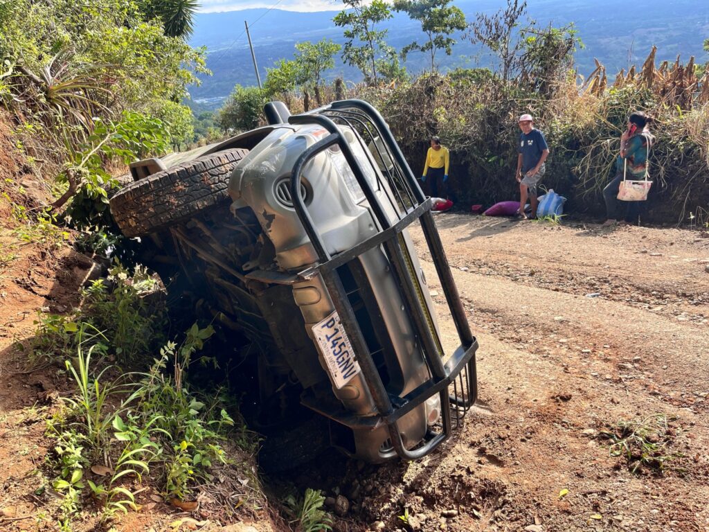 La Libertad. Un grave accidente de tránsito se registró sobre la Calle Principal hacia el cantón Pitichorro, en el límite entre Ciudad Arce y San Juan Opico, cuando un pickup que transportaba personas volcó, dejando al menos seis lesionados, entre ellos dos menores de edad.