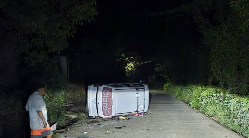 VEHÍCULO DE EMPRESA DE TELEFONÍA VOLCÓ EN SOYAPANGO ESTA MADRUGADA