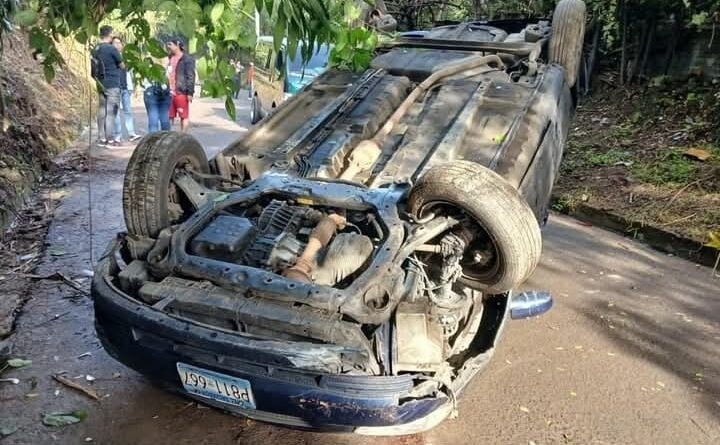 Un vehículo particular volcó tras colisionar con un microbús sobre la calle El Chaparral, que conecta hacia la colonia La Esperanza, en el distrito de Colón, La Libertad Oeste.