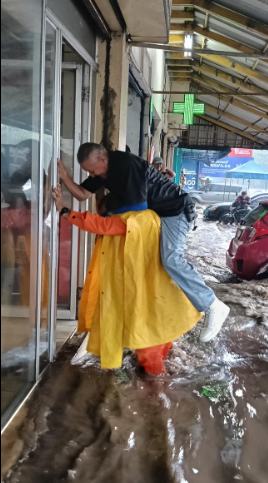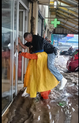 Según testigos, el hombre permaneció varios minutos aferrado al techo de la unidad mientras la corriente seguía aumentando. Finalmente, otro ciudadano logró ayudarlo a salir, evitando una tragedia.
