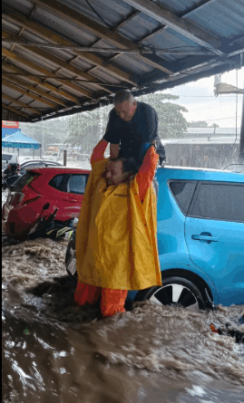 Según testigos, el hombre permaneció varios minutos aferrado al techo de la unidad mientras la corriente seguía aumentando. Finalmente, otro ciudadano logró ayudarlo a salir, evitando una tragedia.